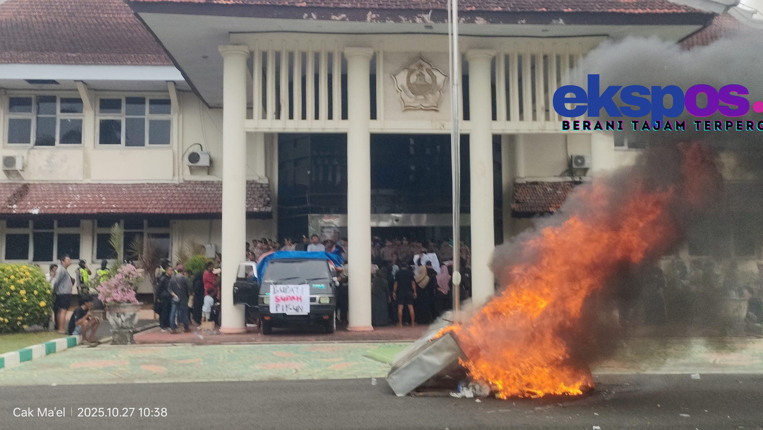 Ekspos.id. Pamekasan — Suasana di depan Kantor Bupati Pamekasan, mendadak tegang. Puluhan Pedagang Kaki Lima (PKL) eks Arlan menggelar aksi protes dengan membakar rombong (gerobak jualan) sebagai simbol kekecewaan terhadap kebijakan pemerintah daerah yang dinilai tidak berpihak pada rakyat kecil. Senin (27/10/2025).