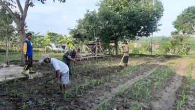 Bertekad meningkatkan produktivitas pertanian di daerah tersebut, Babinsa dan petani bekerja bahu-membahu dalam proses menggemburkan lahan jagung.