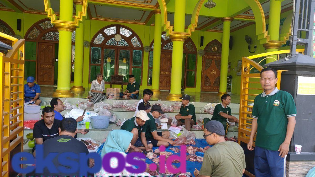 Penitia kurban masjid Al-maa’un kerja sama dalam pemotongan daging