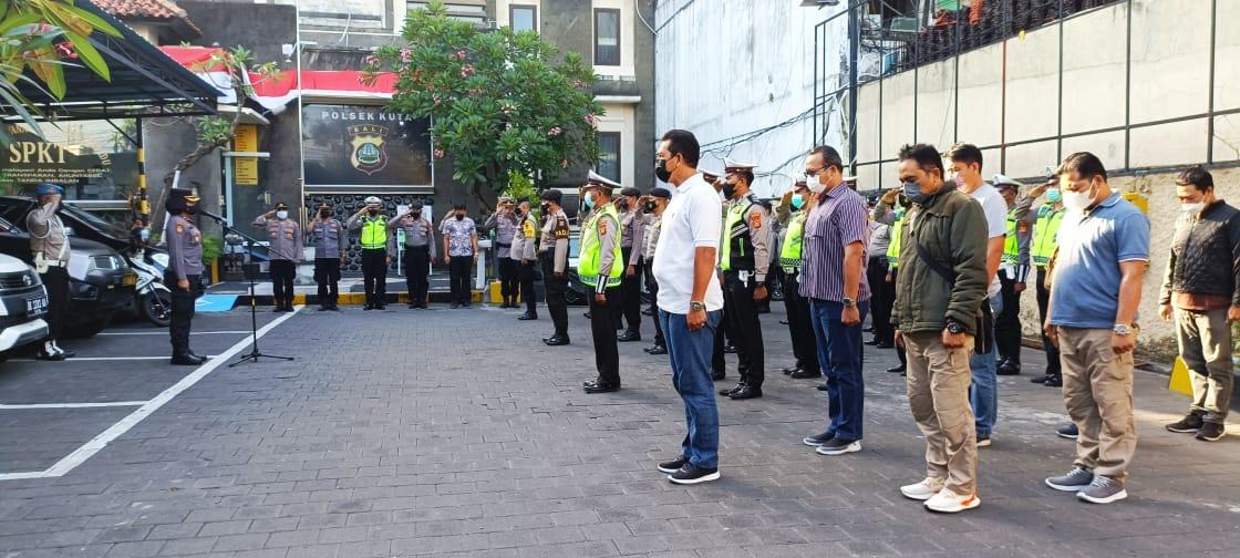 Dalam kesempatan tersebut Kapolsek Kuta menekankan bahwa dalam pelaksanaan tugas dilapangan untuk tetap selalu menjaga solidaritas dan senantiasa bersinergi dengan pihak terkait, sehingga diharapkan keberhasilan tugas bisa maksimal, dalam upaya bersama ciptakan situasi kamtibmas yang tetap aman kondusif.