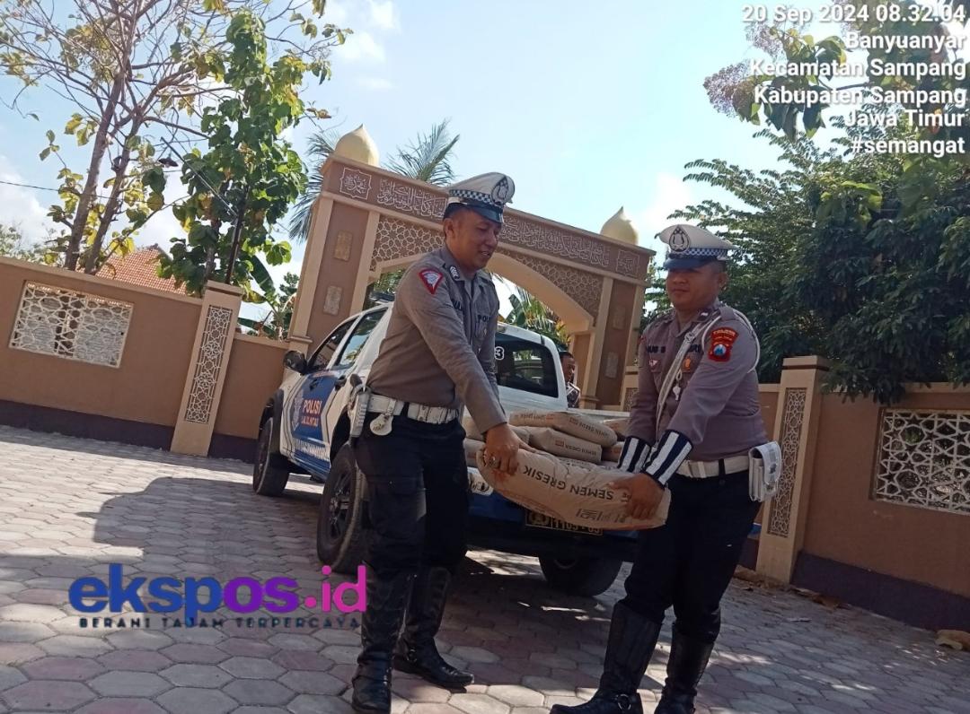 Kapolres Sampang AKBP Hendro Sukmono melalui Kasat Satuan lalulintas (Satlantas) Polres Sampang, AKP. Karnoto, S.H, bahwa bantuan ini merupakan wujud syukur dalam pengabdian kepada masyarakat menjalin hubungan dengan para ulama dan tokoh masyarakat dengan memberikan bahan material bangunan berupa semen kepada Masjid Darussalam,”ucap , AKP. Karnoto, Jum’at (20/09/2024).