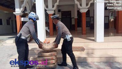 Satlantas Polres Sampang Bantu Material Untuk Pembagunan Kamar Mandi Masjid Darussalam